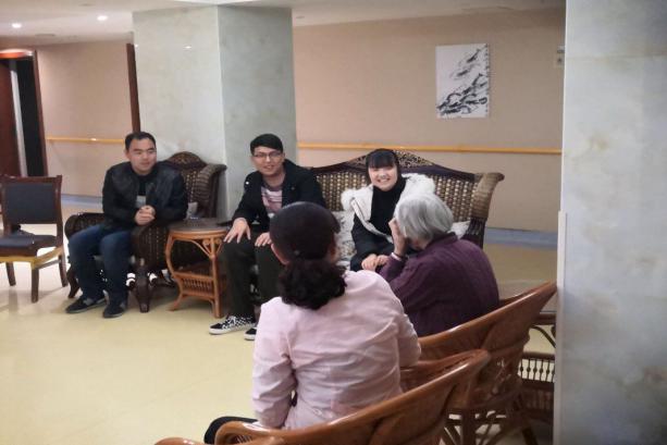 11月23日,宣传委员赵雪娇带领小组成员来到静和老年公寓,与公寓里的爷爷奶奶交谈,了解他们最近的生活状况和身体情况,为他们做一些力所能及的小事,并参与到他们日常的活动中,以尽全力消除他们的孤独感并增进与他们间的感情,让他们体会到更多关切的温暖。