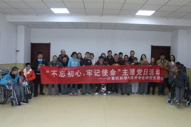 为提高支部党员的志愿精神与奉献精神,计算机科学与技术专业研究生党支部于11月19日至11月26日开展了四次“不忘初心、牢记使命”主题志愿服务活动,活动分别由支部委员带队,于兰州晨光身心障碍人士社会服务中心、五泉山罗藤树特殊儿童服务中心、静和老年公寓中开展。党支部全体人员参加了本次活动。
