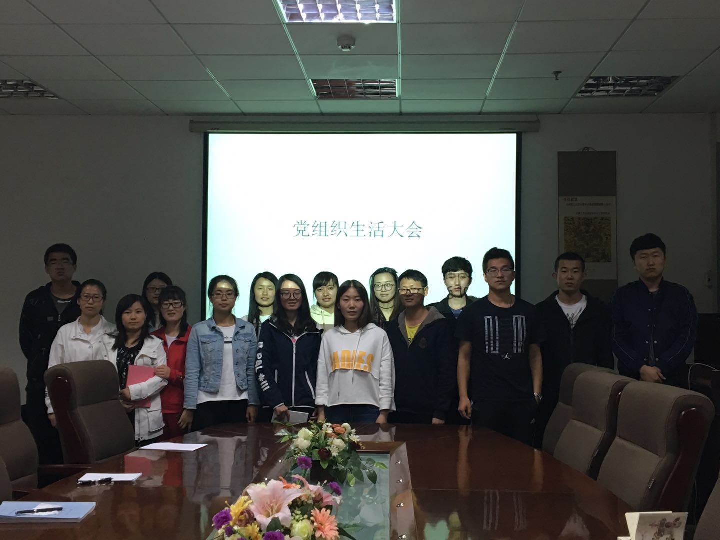 研16-6支部全体党员、预备党员、积极分子参加了此次会议,会议由支部书记唐瑞萍同志主持。