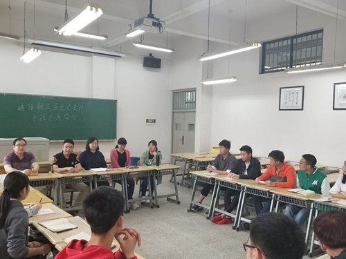 会议开始,各位老师及同学们分别进行了自我介绍,有了初步的了解。在会议中,同学们畅所欲言,老师们也很乐意为同学们答疑解惑。16级通信二班的罗小期和赵政源同学就考研和就业的一些问题向老师询问,许亚美老师说对于如今大二的学生来说,一定要打好基础,学好专业课和英语,将来考研的时候,报辅导班只是外在因素,真正的内因还是在于自己。此外,同学们在考公务员、考研保研、专业课学习以及科创方面的各种疑惑向老师们进行了询问,各位老师也一一进行了细致的解答,同学们收获颇多。