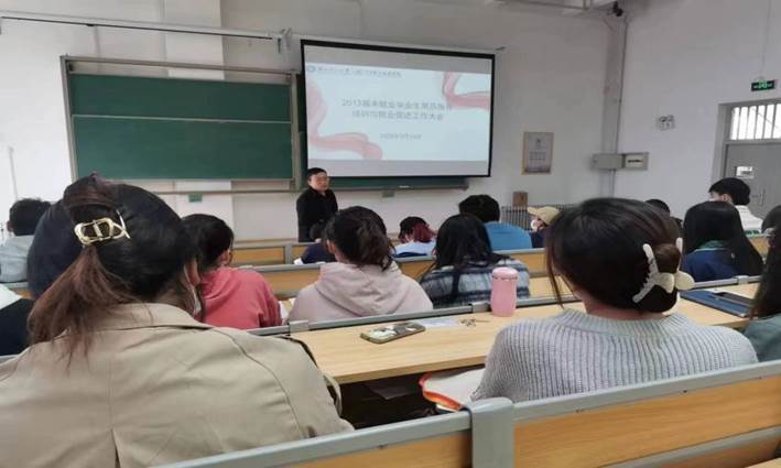 学生办主任潘永锋老师围绕“抢抓春招关键期、全力攻坚促就业”主题进行动员教育,色情av影片