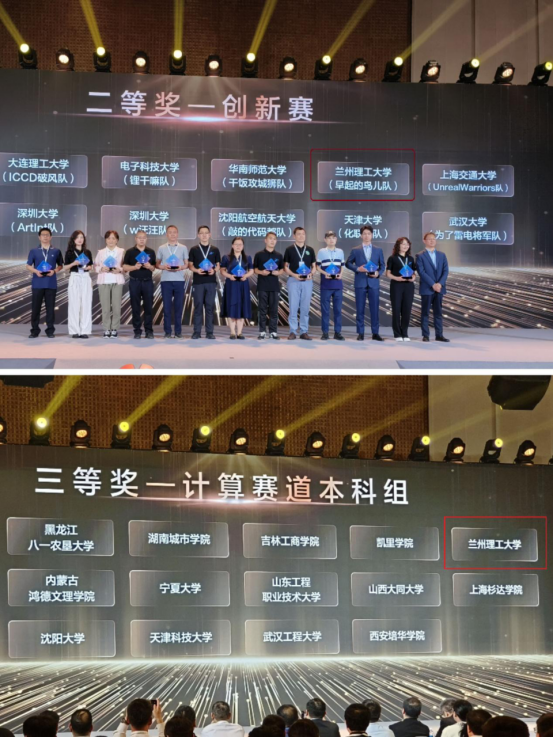 学生张保祺、崔勇、聂生元同学组成的“早起的鸟儿”代表队,荣获创新赛国赛二等奖;许铭轩、瞿则浩、胡鑫浩三位同学组成的代表队,在实践赛计算赛道以甘肃省第一名的成绩代表甘肃晋级全国总决赛,荣获计算赛道本科组三等奖。(撰稿:郑玉峰;审核:高国礼)