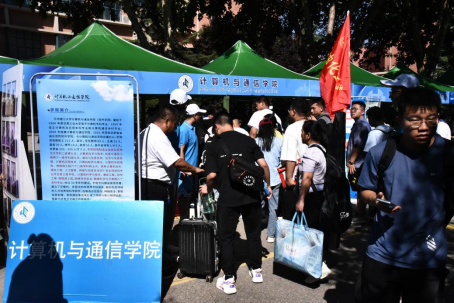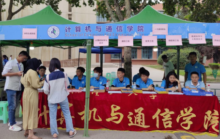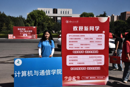 于学校西门口设立引导岗,引导新生入校报道,搭设迎新棚,方便新生办理报到手续、领取学生卡。同时于新生宿舍所在宿舍楼北村H栋、东区五号楼楼下设立迎新志愿者服务站,引导新生入住宿舍,帮助新生搬运行李。
