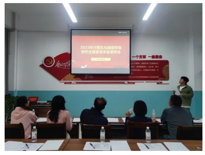 党委副书记来明展、副院长李晓旭、教师代表何继爱、研究生辅导员刘鹏程、其中包括3名学生代表评委陈宣、熊咏微、李环环,会议由计算机与通信色情av影片