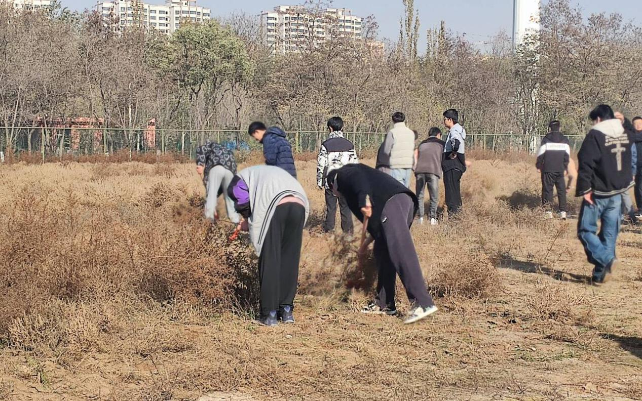 在此阶段劳动教育实践中,后勤管理处给予本次环节大力的支持和指导,充分让教育与劳动紧密结合,适度安排劳动强度,在北村一条街、田径场等地组织开展杂草拔除、垃圾清理、校园卫生清洁等劳动锻炼活动。