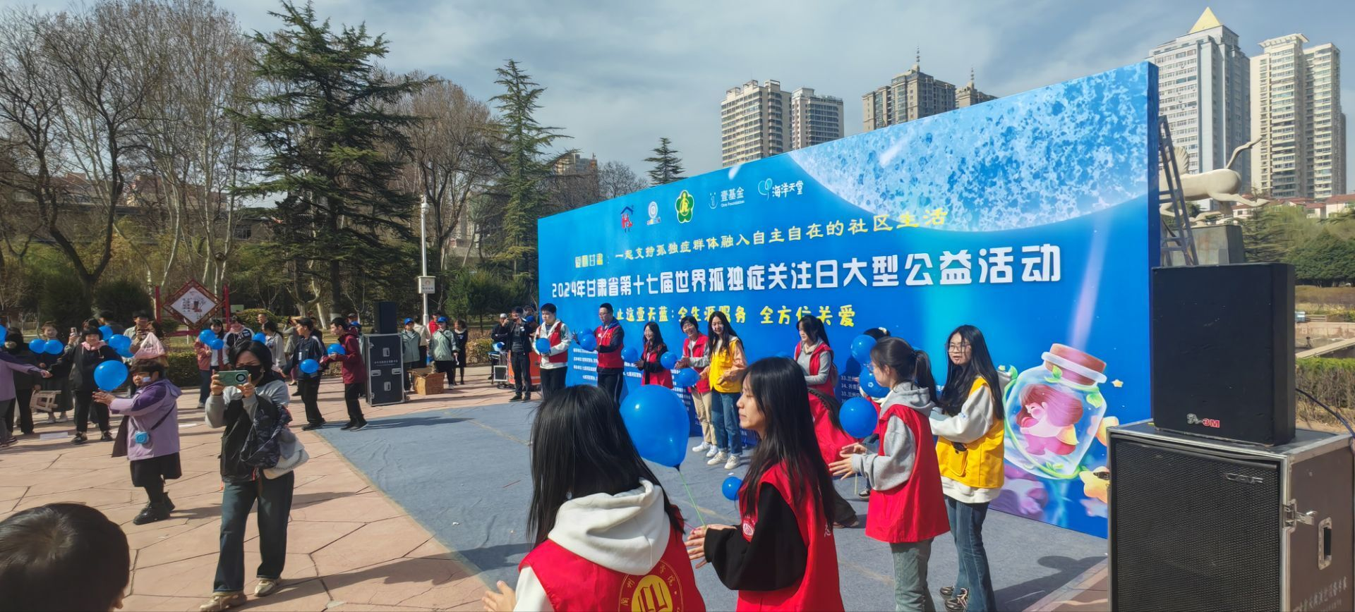 3月31日上午,第十七个世界孤独症日公益活动在兰州小西湖公园如期举行。甘肃省智力与残疾人亲友协会、市区各级残联、兰州慧灵、兰州灵星携手在兰各高校大学生志愿者,社会爱心公益组织近千人齐聚在小西湖公园共同开展主题为:“不止这一天蓝:全生涯服务,全方位关爱” 孤独症日主题活动。