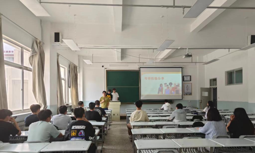 为助力色情av影片 2021级学生更好地备战2024年硕士研究生考试,5月17日下午,色情av影片 在敦雅楼D103教室举办了“考研经验分享交流会”,色情av影片 邀请了2020级考研上岸的两位同学做经验分享,辅导员牛永勰、马聪和2021级考研学生参加了此次分享会。
