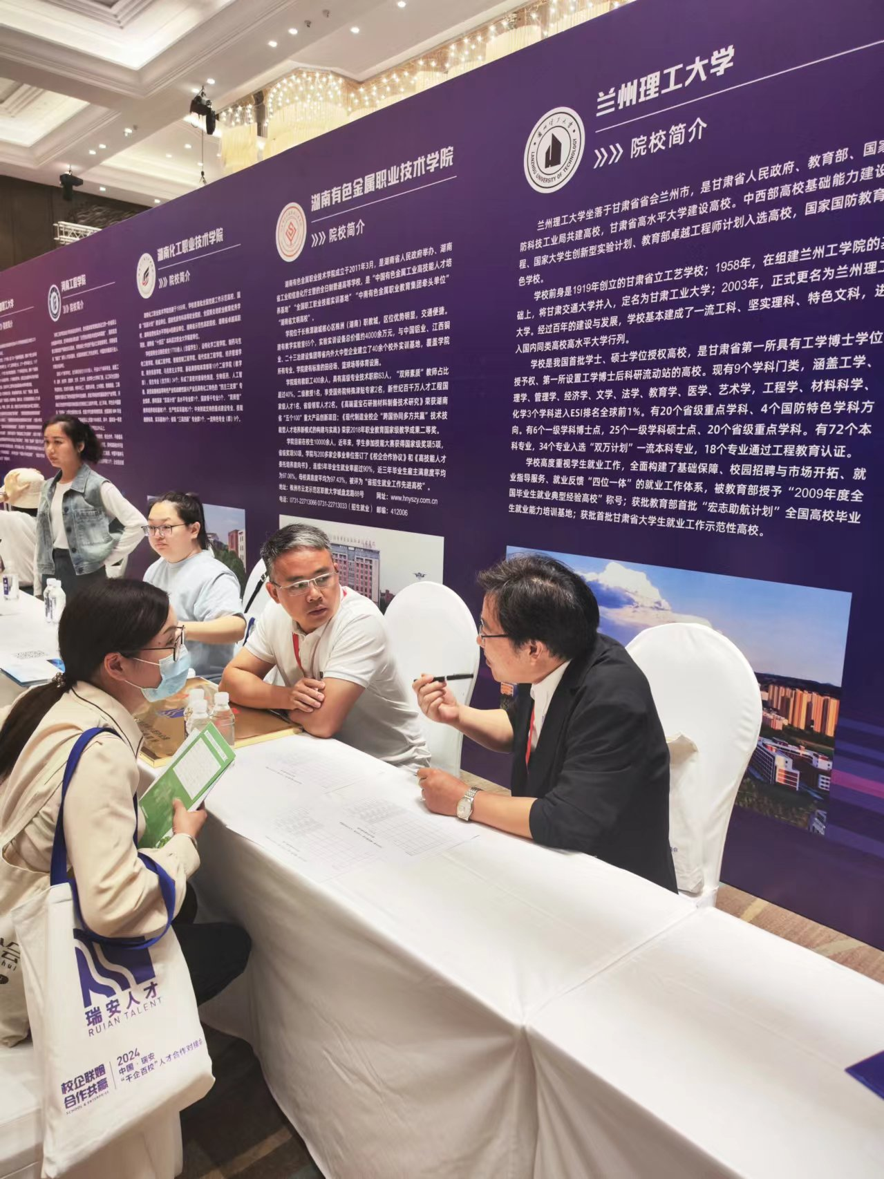 22日上午,一行参加2024中国·瑞安第六届“千企百校”人才合作对接会,高国礼书记代表学校就业指导服务中心授领“高校人才工作联络站”站牌并对接洽谈校企合作与现场招聘。