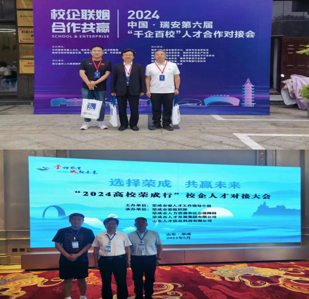 党委书记高国礼、副书记来明展、就业老师张亮等一行3人赴浙江瑞安、山东荣成开展访企拓岗及校企对接洽谈会。