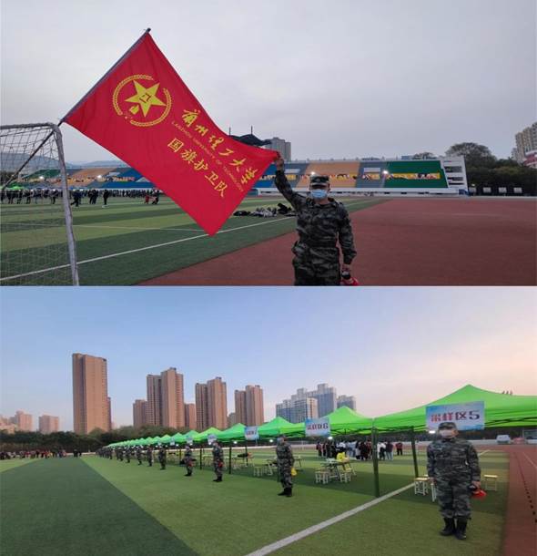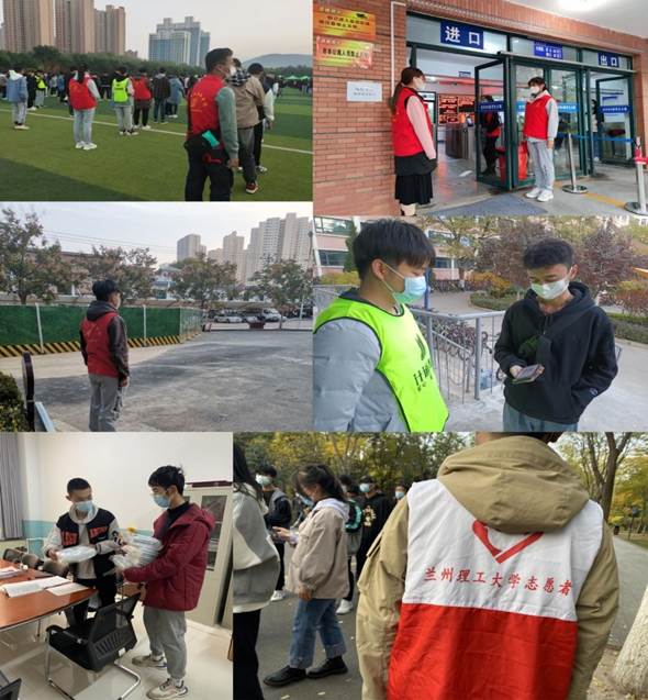 广大学子积极响应号召,哪里需要,哪里就有志愿者的身影。有的志愿者在核酸采样现场协助医护人员做好服务保障,有的志愿者加入退伍大学生和国旗护卫队,担负起现场秩序的维护工作,站好疫情防控第一班岗。流动学生志愿者协助学校安全与应急工作处穿梭于校园的各个角落,劝导师生配戴口罩不聚集,最大限度减少人员流动;学生公寓以及食堂志愿者对出入人员进行测温、健康码查验、公寓楼层消杀等工作。