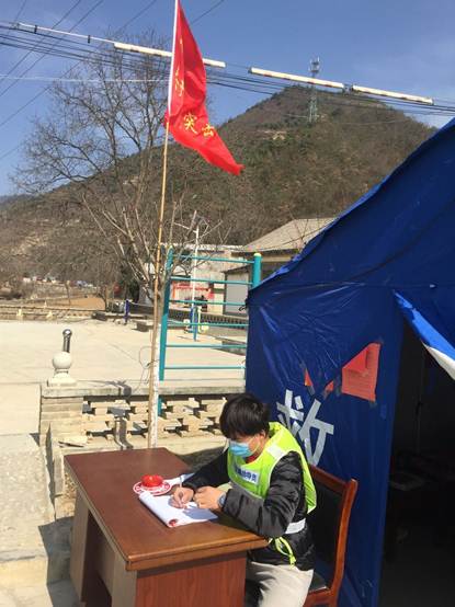 2018级动漫二班苏铭同学弘扬理工大“艰苦奋斗,自强不息”的红柳精神,积极响应党中央和国家号召,进一步发挥共青团在疫情防控中的作用,积极投身在战“疫”一线,从大年初二开始,成为了甘肃省庄浪县韩店镇刘河村的一名青年志愿者,在刘河村村委会的牵头下,在村里设置的劝返点24小时值班驻守,严防人员流动,对外乡入村人员进行劝返,抑制疫情发展。