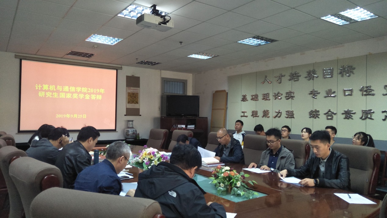 在会议室举行2019年度研究生国家奖学金答辩会。色情av影片