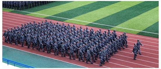 尽管赤日当空,但计通学子的热情不减,精神抖擞地参与到了各个项目训练当中。在军训中,太阳的炽热给军训工作带来困难,但同学们发扬了计通人“不怕苦、不怕累,勇于奋战在第一线”的精神,有的学生病倒了,但凭借着顽强的意志,稍有好转便坚持训练;有的学生带病仍在坚持训练。在教官亲切的关怀和严格训练下,在短短的十几天里,齐步走、正步走、齐步变正步、解散、集合及分列式等预定训练科目已初见成效。教官手把手教,学生认真地学,在军训队列训练中,方队整齐,精神饱满,步伐矫健、口令准确、声音嘹亮。
