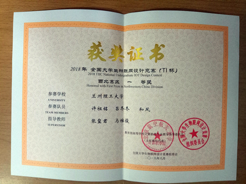 我校5支参赛队伍参加了西北赛区决赛。经过激烈的PPT答辩和作品演示,最终我校学子斩获两个特等奖,两个一等奖,其中由冯涛老师指导的《基于Niagara框架的黄河水文水质监测及应用》和彭铎,马维俊老师指导的《基于物联网技术的智慧农业机器人》获得特等奖,由张玺君老师指导的《基于NB-IoT的智能老年医疗可穿戴安全监护设备》和《基于自动追踪技术的老人看护兼陪伴聊天功能的智能机器宠物》斩获两个一等奖。获得特等奖的参赛作品将会赴北京参加全国大学生物联网设计竞赛全国总决赛。