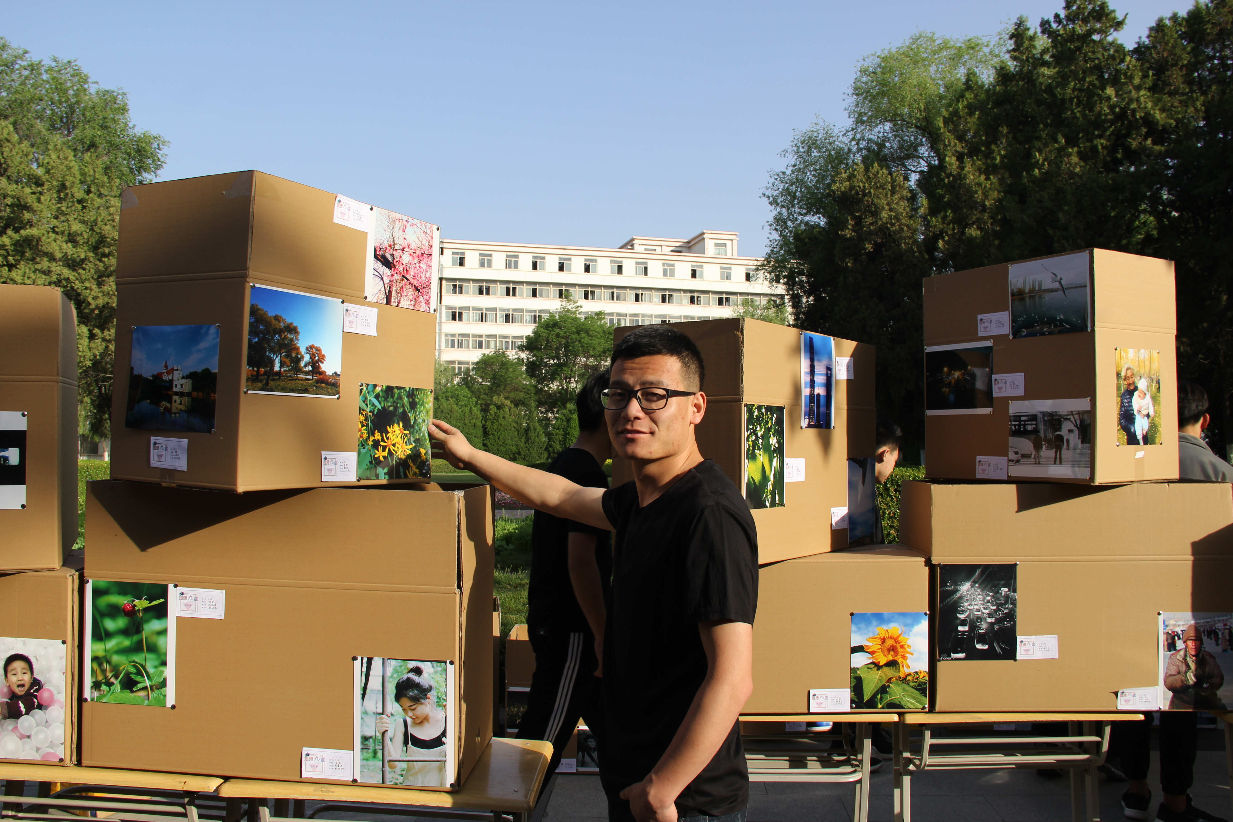 2018年5月14日7点40分,在校本部七号楼对面出现了一堆造型各异的纸箱,在这些或高或低的纸箱上贴着丰富多彩的照片。有气势磅礴的壮丽河山、有别具一格的街拍、有未来感十足的建筑、有绚丽多彩的夜景、有俏皮可爱的人物。时间倒回一个小时前,色情av影片 软件色情av影片 摄师九度摄影摄像协会的同学们开始为第六届 “影像解世界,镜头记时光”摄影展搭建这些造型各异的纸箱。