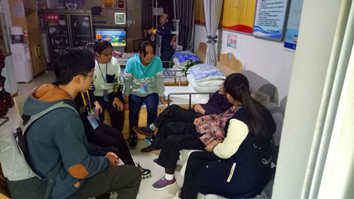 在志愿活动开展期间,志愿者们蹲在或坐在老人的身边,陪老人们拉拉家常,讲讲笑话,给老人们带去了欢笑和快乐。在老人的身边的志愿者们像对待自己的亲人一样给他们捶背,按摩,使老人们变得轻松,帮助老人打扫卫生。听老人讲述自己的过去,讨论现在的生活,不仅使老人们摆脱了寂寞,也使自己受到了教育。看到老人们灿烂的笑脸,听着老人们爽朗的笑声,志愿者们充分体会到了本次志愿活动的意义所在。