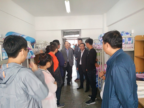 ,冯涛副院长、赵付青副院长、白杨副书记以及各班班主任等一行走访了新生寝室,了解大一新生初次步入大学校园的感受。