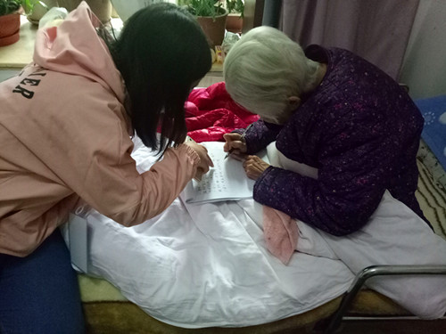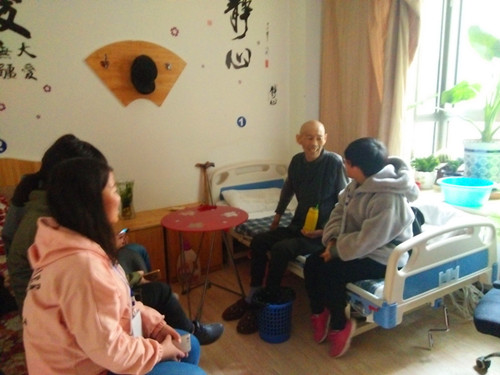 老吾老以及人之老,把我们对自己亲人的关爱分出来一小部分给那些孤独的老人们,把春天送进他们的心灵,用我们的实际行动,让那些爷爷奶奶,老有所养,老有所依,心中温暖如春。志愿者们和爷爷奶奶坐在一起,手拉着手,说说笑笑。爷爷问问志愿者的学习,生活等,志愿者也靠在爷爷肩上听他们说过去的事。志愿者帮爷爷奶奶整理衣物,收拾好我们一大家子的温馨港湾。每个志愿者都深刻的感悟到爱和责任与志愿服务同行,进一步深切体会到关心长辈,敬老爱老,培养坚强的心灵,顽强的意志,承担社会责任的信念。