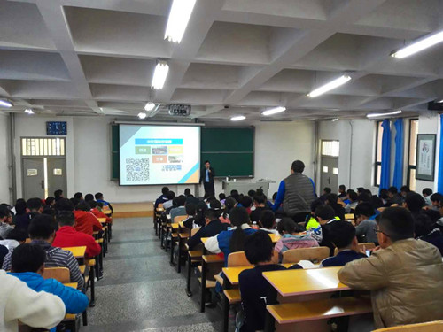 胡锋老师从互联网的当前发展状况讲起,向同学们讲解了互联网时代与人们密不可分的关系、IT行业近年发展成果及IT专业学生未来的就业前景。对同学们关心的程序设计、软件测试、UI设计、软件的运营及维护做了细致讲解。胡老师的精彩讲解吸引了同学们对IT行业的兴趣,现场问答环节,同学们与胡峰老师热切地交流有关云服务、红旗操作系统等专业问题,胡老师对此也进行了耐心而专业的回答,使得同学们的问题得已解决。