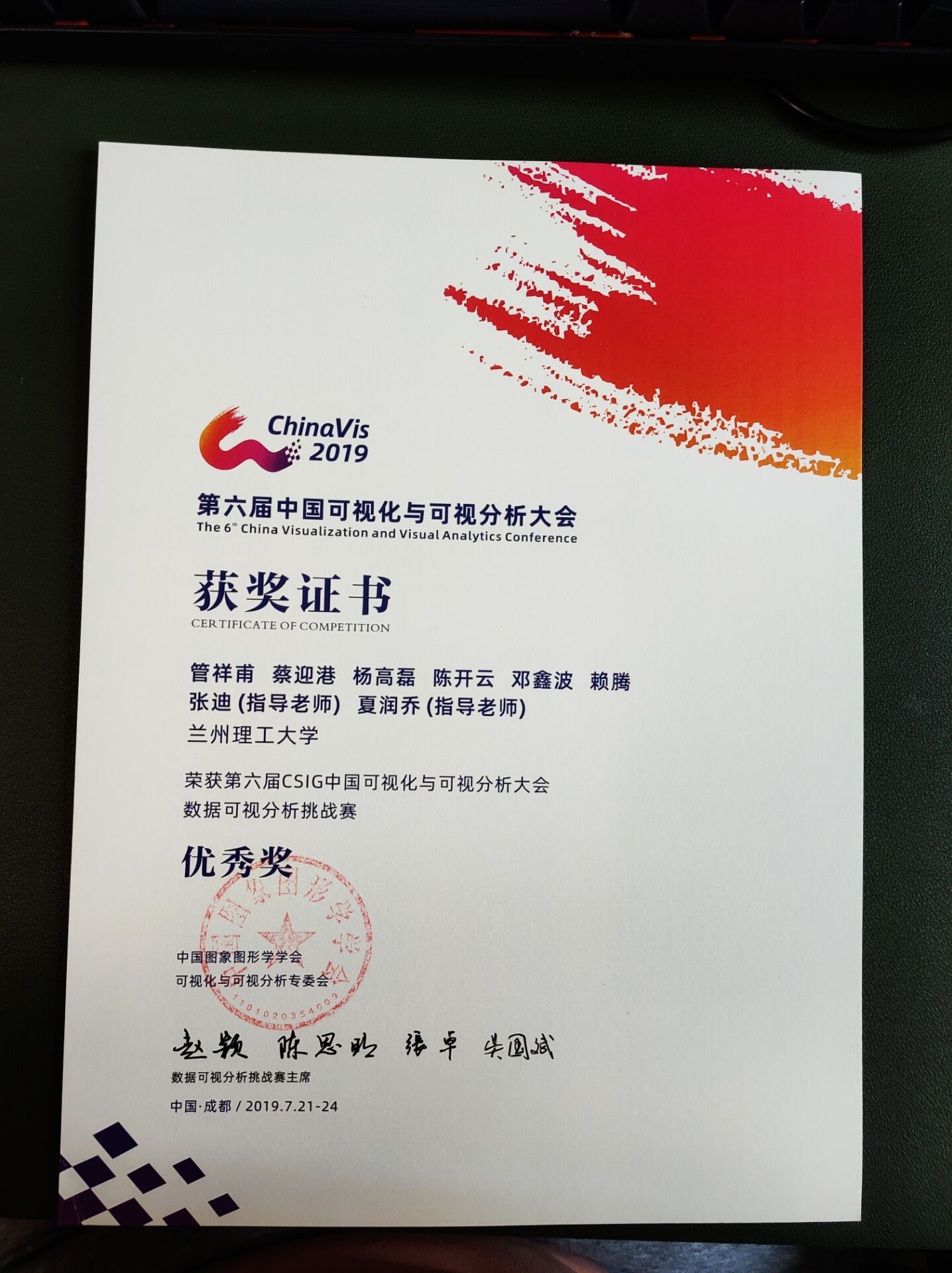 网络空间安全系的张迪老师,组织计算机科学与技术系15级学生管祥甫、邓鑫波、蔡迎港、杨高磊、赖腾、陈开云六名同学参赛,并获得优秀奖。这是我校师生第一次参加ChinaVis数据可视分析挑战赛。未来佳绩可期。