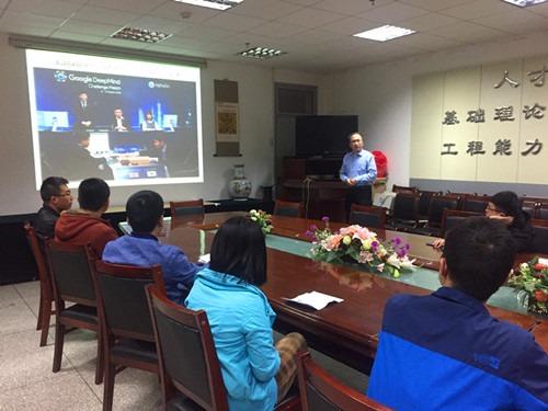张永教授首先从ALphaGO中围棋平台讲起,并分别对围棋的发展史及下围棋时所注意的规则做了详细介绍,然后对AlphaGo背后的深度学习、卷积神经网络、人工智能、以及回归函数做了详细的阐述。随后,对现在出现人工智能是否能够超越人类进行了互动交流,张永教授列举大量实例,通过对比,充分证明了人工智能的强大,以及预测人工智能已经在全球得到了快速的发展。深度学习和卷积神经网络,以前都是单一的运用,现在综合起来构建一种新的模型,达到了对处理事务有了一个新的平台,对于回归函数来说,不仅仅是简单的线性回归函数,要将线性回归和非线性回归结合起来找到他们之间的平衡点,进行课题分析研究。最后,张永教授就智能学习中需要大量的数据,以及数据的获取和处理做了简单介绍。