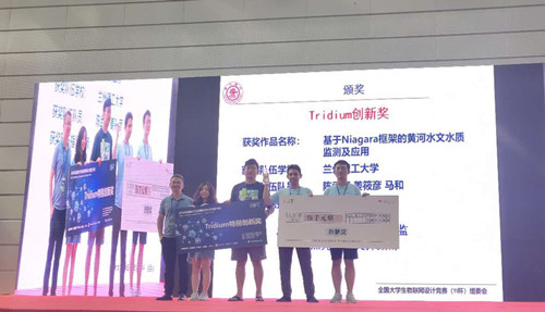 研究生龚翔、马和(留学生)、陈武阳、姜筱彦等同学组队,耗时5个月完成的项目——《基于Niagara框架的黄河水文水质监测及应用》,凭借优秀的创意、先进的物联网架构以及时尚的界面设计,在兰州交通大学举行的西北赛区复赛中获得特等奖,成功晋级国赛总决赛。在无锡的总决赛中发挥出色,与来自全国的107支队伍同台角逐。经过答辩、路演、交叉评审等环节,最终赢得了Honeywell旗下Tridium公司单独赞助的“企业创新奖”,奖金5000元。同时获得了总决赛二等奖,奖金1000元。