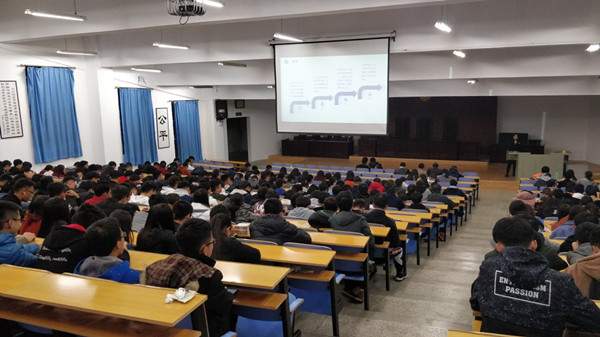 赵付青教授做报告 报告会现场 10月31日晚,色情av影片 在彭家坪校区举办2018年色情av影片 色情av影片 统一战线代表人士校园励志行报告会,国际合作处副处长赵付青教授应邀主讲,2018级学生聆...
