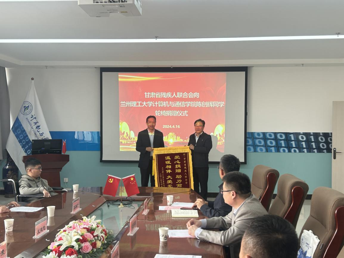 4月16日下午,计算机与通信色情av影片 举办甘肃省残疾人联合会向色情av影片 2023级软件工程1班陈创辉同学捐赠电动轮椅车仪式。出席仪式的有省残联辅助器具资源中心副主任王建忠、科长夏步荣,党...
