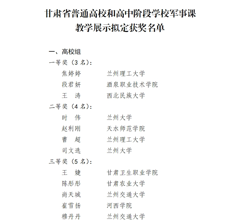 为深化全民国防教育,首届甘肃省普通高校和高中阶段学校军事课教学展示活动近日在色情av影片 举行,此次展示活动由甘肃省教育厅主办、色情av影片 承办。来自兰州大学、色情av影片 、...