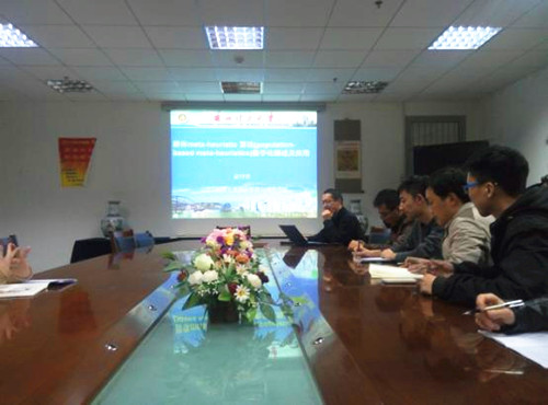 “群体meta-heuristic 算法(population-based meta-heuristics)数学化描述及应用”报告 赵付青教授作报告 报告现场 学生认真听报告 为了使研究生的科研水平再上一个新台阶,...